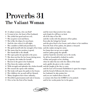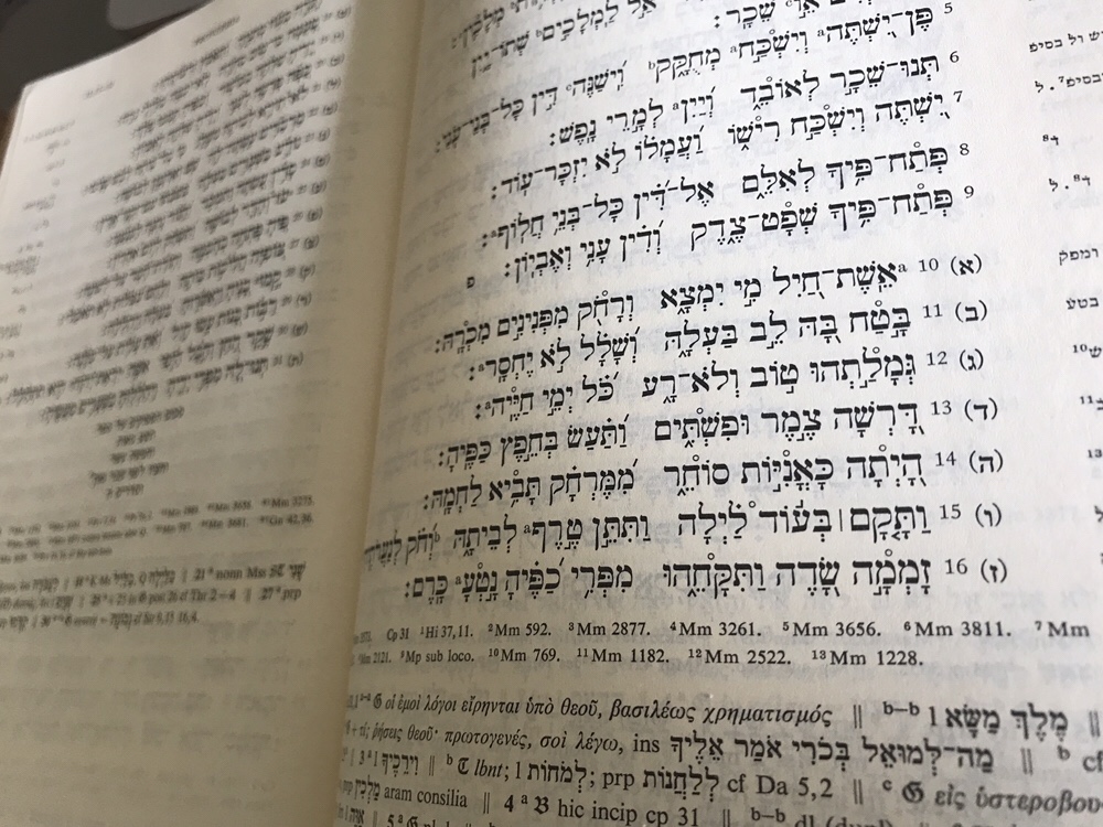 I’m working on a project involving Proverbs 31, and I’ve really fallen in love with the poetry of its twenty-two lines. The famous work is an acrostic, each line beginning with a successive letter of the Hebrew alphabet.